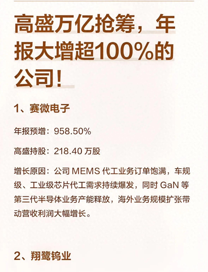 当下正处在A股一年一度的年报聚积透露窗口期,市集里绝大多数投资者看财报,都俗例性盯着净利润涨幅的数字,被翻倍以致近十倍的利润增幅诱导,看示有名机构持仓就下相识跟风关怀,却很少千里下心拆分功绩增长的真正起源,分不清一次性收益和企业主业的内生成长,更忽略了行业供需样子、国度顶层产业政策,以及长线资金布局的底层念念路。 网罗上随地可见只放大涨幅噱头、隐去企业谋划短板的碎屑化内容,大多只把机构持仓、功绩高增当成流量卖点,十足不讲透背后的逻辑真伪。今天我就聚合最新官方透露的企业年报预报、公开机构持仓数据、产业链真正供需近况,还有国度对应的产业赞成政策,把两家被全球头部投行高盛提前完成底仓布局、全年功绩实现大幅周期回转的企业完整讲透。全程无谓夸张噱头,不刻意制造懆急,只用真正公开的数据拆解内核,刺破市面上同质化内容刻意守密的信息盲区,用接地气的大口语讲清成长本体,也理清平方散户濒临年报行情最容易踩中的领略误区。 手脚全球有名的长线资管机构,高盛近些年在A股的持仓格调依然发生了很赫然的转向,不再像以往一样抱团糟践、金融类传统蓝筹标的,而是把资金重心布局在贴合国内新质分娩力发展、国度战术赞成赛说念、基本面迎来详情味拐点的细分范围企业。它的选股逻辑从来都不是短期股价炒作,核心只锁定三个圭臬:企业具备真正的谋划周期回转、身处耐久成长的刚需赛说念、有政策与产业链双重护城河,本次被市集热议的两家标的,刚好完好贴合这套底层框架,并非网传的盲目“抢筹”炒作,更多是对国内产业耐久发展红利的底仓建树。 最初来说市集关怀度最高的赛微电子,凭据企业官方发布的2025年全年功绩预报,公司本次年报归母净利润同比增幅达到958.50%,径直完成从上一年度亏空到全年大额盈利的完整越过,同期公开的资金持仓数据骄慢,高盛持有这家企业218.40万股,属于谨慎的长线底仓布局。这里我要先刺破全网绝大多数流量内容都刻意朦胧的核心真相,亦然许多投资者最容易被误导的地方:这份接近十倍的利润暴涨,并不十足来自企业芯片代工主业的谋划爆发。聚合深交所透露的完整年报明细不错看到,本次利润大幅走高的核心组成,一部分是企业国外钞票处治带来的一次性收益,另一部分才是自身主生意务的谋划改善,市面上大部安分容只放大惊东说念主的涨幅数字,十足遁藏收益结构的拆分,很容易让东说念主单方面判定企业主业依然全面升起。 咱们静下心拆解企业自己的业务底盘,赛微电子是国内稀缺的具备全经过制造才调的MEMS芯片代工场商,在国内芯片国产替代的大趋势里,占据着格外私有的细分赛说念位置。跟着国内智能汽车产业持续扩容,车规级芯片的自主可控需求正在全产业链快速爆发,车载传感、车身限度系统、智能座舱里大批的小型感知芯片,都依赖MEMS代工产能,同期工业自动化范围的高精度传感芯片需求,也在终年保持沉稳上行,企业现有的MEMS代工业务订单耐久处于满盈气象,这亦然企业基本面最塌实的基本盘。 除此以外市集重心关怀的氮化镓GaN第三代半导体业务,也在叙述期内稳步完成产能爬坡与开释。在新动力车载快充、光伏逆变、数据中心电源顾问这些高景气赛说念中,氮化镓材料对比传统硅基芯片,在能耗限度、功率密度、散热性能上都有着自然上风,是国度多年重心赞成的宽禁带半导体细分标的。近似全球供应链原土化鬈曲的行业趋势,企业的国外业务合营也在持续落地,合作念客户范围不竭拓宽,为后续主业的耐久营收沉稳打下了基础。同期咱们也要客不雅看待企业当下的短板,年报数据骄慢公司全年主生意务营收同比有所回落,主业内生谋划的盈利设立还处在爬坡阶段,距离十足沉稳的造血才调还有考据空间,澳门威斯人app下载官网一次性钞票收益拉高了举座的利润增幅,后续成长能否持续,还要看接下来季度里主业订单与营收的达成情况。 从国度产业政策的大配景来看,这家企业身处的赛说念自己就踩中了国内耐久战术干线。从国度“十四五”数字经济与集成电路发展盘算运转,我国就把特质工艺芯片代工、MEMS传感芯片、氮化镓等级三代半导体,划入了要津核心时间攻坚名单。国度大基金三期专门分裂了对应资金额度,重心营救国内企业补王人特质工艺代工的产能短板,裁汰高端芯片对外依存度,寰球范围内已有稀奇23个省市落地了功率半导体专项赞成政策,累计插足的财政资金范围可不雅,针对车规级芯片认证、原土产业链配套建设、企业研发变嫌都出台了税费减免、贷款贴息、产业园区配套等全场所营救要领。政策层面的耐久托底,亦然长线机构兴盛提前布局这类细分赛说念企业的底层底气。 顺着产业干线往下蔓延,咱们再来看相似被长线资金布局、完成基本面全面回转的翔鹭钨业。手脚国内钨产业链中游精粹加工的核心企业,公司2025年全年谋划走出了此前的亏空周期,实现完整的基本面拐点,官方透露的年报数据骄慢,企业全年生意收入同比增长37.71%,归母净利润同比增幅超260%,从上一年度的全年亏空径直转为沉稳盈利,四季度单季度的盈利范围,就依然稀奇此前多个季度的总数,谋划气象迎来了全场所设立。 许多东说念主对钨金属并不纯属,却不知说念它被称作“当代工业的牙齿”,是高端制造、航空航天、精密