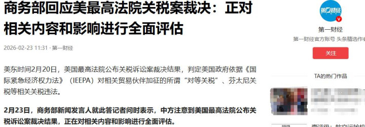 结语:博弈插足新阶段,中国定力是重要 不错说,特朗普手中的“关税王牌”被废,象征着中好意思经贸博弈插足了一个全新的阶段。 白宫底本可能指望拿着“关税大棒”当筹码,逼着中方在农产物采购或者科技出口抛弃上腐败。但当今,这个筹码的效率也曾大打扣头。 反不雅中方,通过精确的反制和广阔的产业实力,正在慢慢掌捏博弈的主动权。固然,我们也不成掉以轻心。 若是特朗普为了悦目,宝石把关税税率陶冶到15%以至更高,依然会激发中方和其他商业伙伴的反对,商业战2.0的风险并莫得完全隐藏。 后续的博弈走向,很猛进度上要看此次特朗普访华,两边能不成达成某种阶段性的契约。但无论恶果何如,有极少是细看法:中好意思之间的结构性竞争不会隐藏。 正如那句老话所说,打铁还需本身硬。只须我们稳住阵地,作念好我方的事,听凭风波起,稳坐垂纶台。 老闫就给民众聊到这了,下期内容我们不见不散~ 参考信息: 好意思国最高法院公布关税诉讼案裁决恶果 中国商务部复兴-2026-02-23 12:02·中国新闻网 好意思新加征关税税率升至15% 多国询查打法决策-2026-02-22 08:00·极目新闻