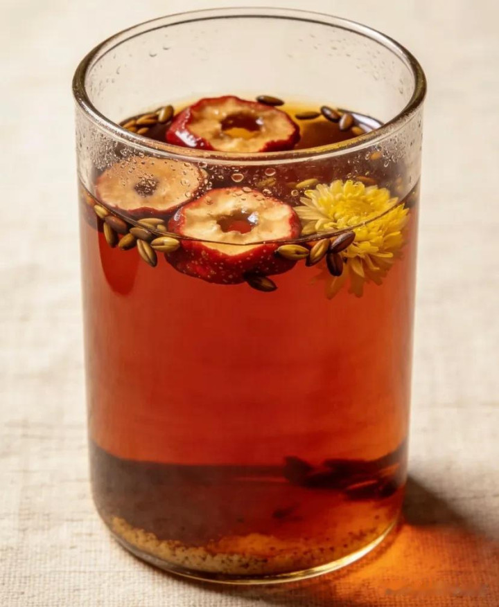 食材:干山楂10克、决明子8克、菊花3朵 1.通盘食材用净水快速冲洗。 2.放入杯中,热水冲泡焖15分钟。 3.代茶饮用,饭后喝恶果更好。 功效:消食化积、减少脂肪堆积,收紧大肚腩。 三、红豆茯苓祛湿水