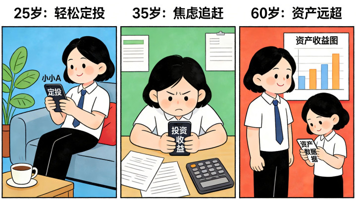 对比一:起步晨夕的“鸿沟” {jz:field.toptypename/}假定年化收益率为8%(这是一个永久投资权利类资产可能终了的合理酬劳): 小A:从25岁运行,每月定投500元,投10年,到35岁本金共干预6万元,然后罢手干预,但让钱接续复利增长。 小B:从35岁运行,每月定投1000元(是小A的2倍),一直投到60岁,本金共干预30万元(是小A总本金的5倍)。 到60岁时,效果若何? 小A的总资产约为 96.8万元。 小B的总资产约为 93.4万元。 小A干预更少的钱,却因为早了10年运行,最终财富反超了干预本金更多、但起步更晚的小B。 对比二:收益率差距的“复利天堑” 咱们基于永久的历史平均数据进行一个纯表面的对比演示:假定相似每月定投1000元,开云app坚捏30年,若是年化收益率是3%…若是是8%…若是是12%…(请刺目,这齐是简化模子假定,骨子投资中收益率是波动的,且存在耗费本金的风险,过往数据不代表将来发扬。) 若是年化收益率是3%(雷同货币基金),30年后总资产约为 58.4万元。 若是年化收益率是8%(雷同偏股型基金指数永久酬劳),30年后总资产约为 149万元。 若是年化收益率是12%(雷同顶级基金司理的永久水平),30年后总资产约为 349.5万元。 你看,收益率从3%擢升到12%,看起来只多了9个百分点,但最终效果却收支了惊东说念主的291万,是低收益的近6倍! 这便是复利对收益率的放大效应。 这两个对比告诉咱们两个铁律:1. 运行时间比本金大小迫切得多;2. 永久收益率的高下,在复利作用下会产生一丈差九尺的效果。 三、钱未几,具体该何如启动?四步开启你的复利之旅 目下你长入了复利的威力,那么具体该何如作念?记取这浅近的四步: