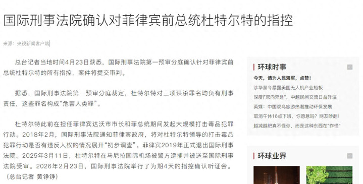 笔据央视新闻报说念,外洋刑事法院第一预审分庭,一致阐述了对菲律宾前总统杜特尔特的所有这个词指控,并谨慎将其布置审判分庭进行全面审判。 具体指控施行包括三项“反东说念主类罪”,划分是谋杀、谋杀未遂、以及系统性报复遗民。 从外洋刑事法院给出的文献来看,他们这些指控的主要时辰线,是在老杜担任达沃市市长和总统技巧,发动的“扫毒干戈”中发生的夷戮事件。外洋刑事法院预审分庭觉得,有“充分情理”信服,杜特尔特应该对这些漏洞承担处治。 这里最大的争议其实不仅在于,老杜在位技巧的行动,是否犯下了“反东说念主类罪”,更垂死的在于,外洋刑事法院关于这些事情,到底有莫得统帅权? 按照老杜的说,他觉得菲律宾在2019年退出了《罗马规约》,可是外洋刑事法院觉得,上述行动发生在退约之前,滚球app中国官网下载入口是以他们有权益管。