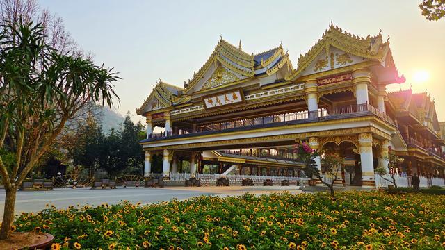 中勒水库的咖啡店,一壶手冲咖啡的香气里静看山光水色。孟连大金塔的日落,拉长了这座小城的慢节拍。
