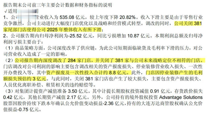 图源:永辉超市2025年报 全体来看,关店与门店调改,组成了永辉全年耗损的中枢主体。 2025年永辉关闭381家尾部门店,完成284家门店深度调改。两类看成产生的刚性成本全额计入当期损益,门店调改对应的钞票报废、一次性干预悉数8.8亿元,收歇装修毛利损失约3亿元,重复门店关停产生的钞票贬责、东谈主员赔偿、租出失约等支拨,关店与调改有关非商量性成本悉数超12亿元。